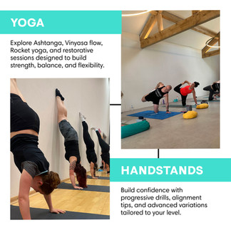 Daily handstand workshops with Natalie, building strength, alignment, and balance (all levels welcome!)